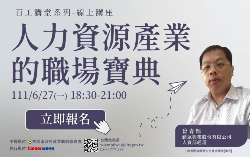 【防疫零距離-免費線上講座】111/6/27(一)18:30-21:00 百工講堂:人力資源產業的職場寶典